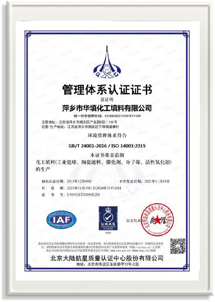 萍鄉(xiāng)市華填化工填料有限公司,位于320國(guó)道、109國(guó)道、浙贛鐵路、昌金高速公路貫穿其中,交通便利,是江西西部一顆燦爛明珠,創(chuàng)建于20世紀(jì)70年代初期,是中國(guó)石油天然氣股份有限公司“能源一號(hào)網(wǎng)”會(huì)員企業(yè)、中國(guó)石化物資采購(gòu)電子商務(wù)網(wǎng)絡(luò)和中國(guó)海洋石油總公司采辦業(yè)務(wù)系統(tǒng)成員單位,是上海大學(xué)江西材料基因組工程產(chǎn)業(yè)研究院工業(yè)陶瓷產(chǎn)業(yè)創(chuàng)新聯(lián)盟基地,且通過ISO9001:2015質(zhì)量管理體系、ISO14001:2015環(huán)境管理體系、ISO45001:2018職業(yè)健康安全管理體系認(rèn)證的化工填料生產(chǎn)企業(yè)。公司擁有陶瓷、塑料、金屬填料、催化劑、活性氧化鋁、分子篩等產(chǎn)品生產(chǎn)線,現(xiàn)有固定資產(chǎn)3616萬(wàn)元,占地面積3.8萬(wàn)平方米。公司具有悠久的生產(chǎn)歷史、雄厚的技術(shù)力量和先進(jìn)的生產(chǎn)工藝設(shè)備,可生產(chǎn)工業(yè)瓷球(支撐劑)、陶瓷、金屬、塑料質(zhì)的規(guī)整、散堆化工填料及分子篩、催化劑、生化濾料、活性氧化鋁、石化助劑、活性炭、環(huán)保材料、耐火材料等系列的200多種規(guī)格型號(hào)產(chǎn)品。